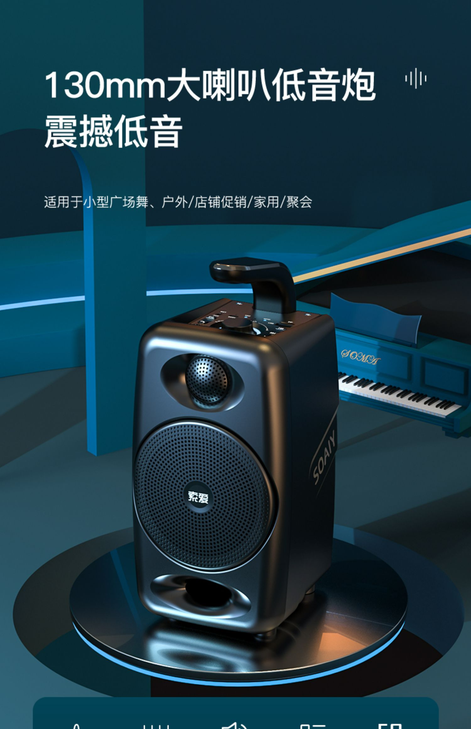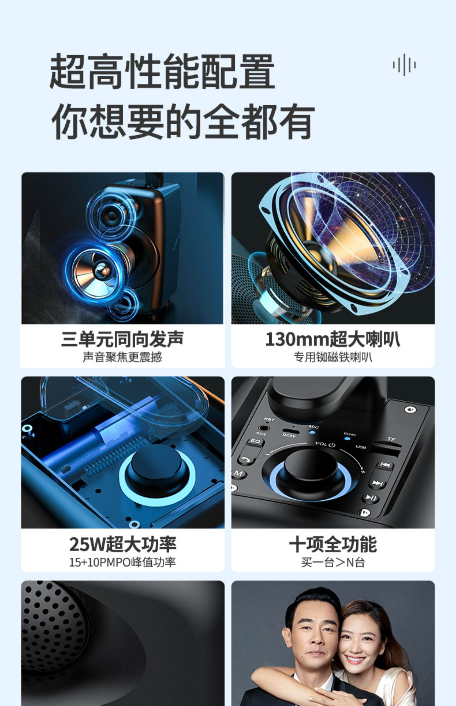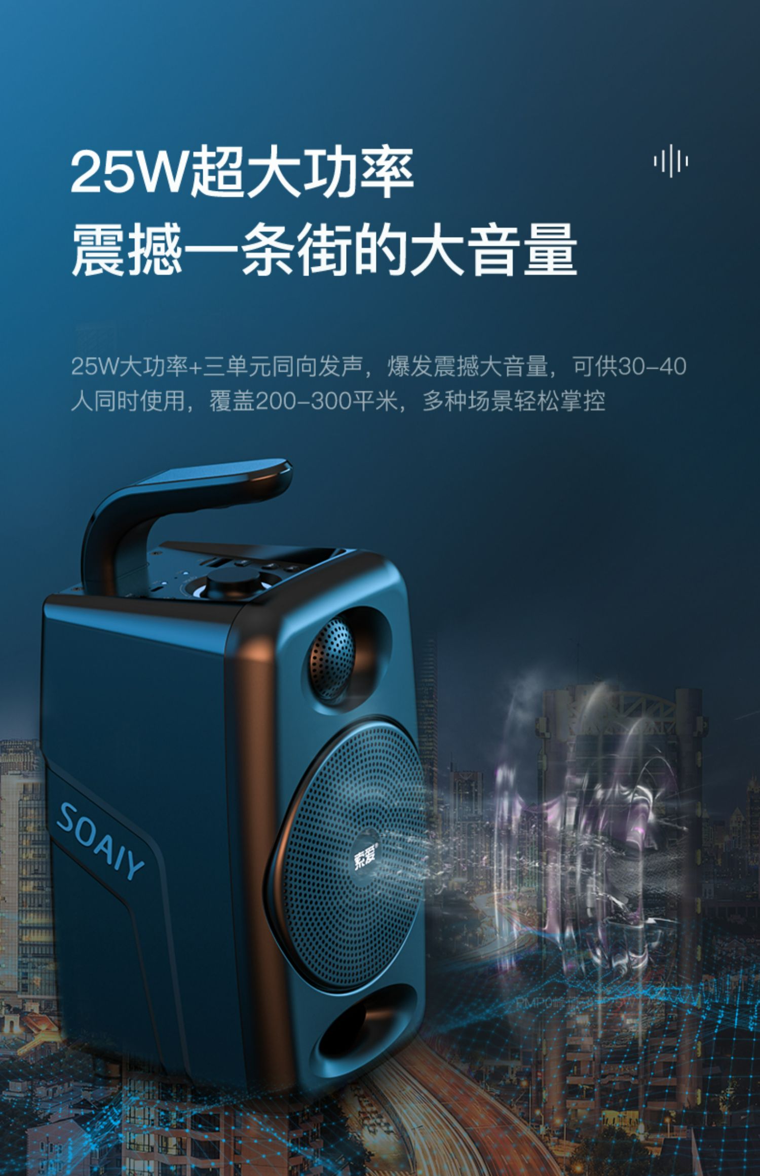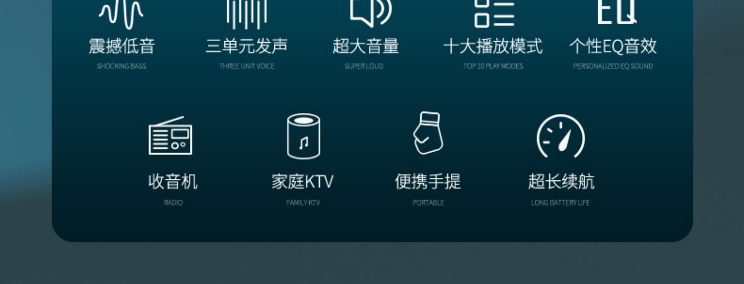 播放时长:10小时额定功率:25W喇叭材质:钕磁铁