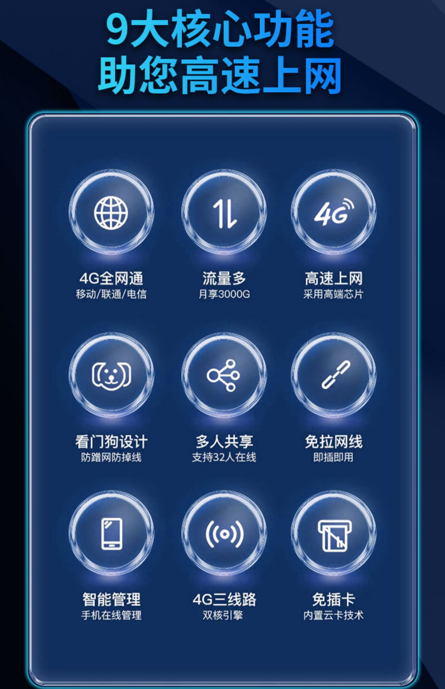 成色:全新颜色分类:工业级电竞4g无线路由器 工业级电竞无线路由器+增益天线 Pro四核穿墙王800MBPS Pro+八核电竞1200MBPS运营商:中国电信 中国移动 中国联通