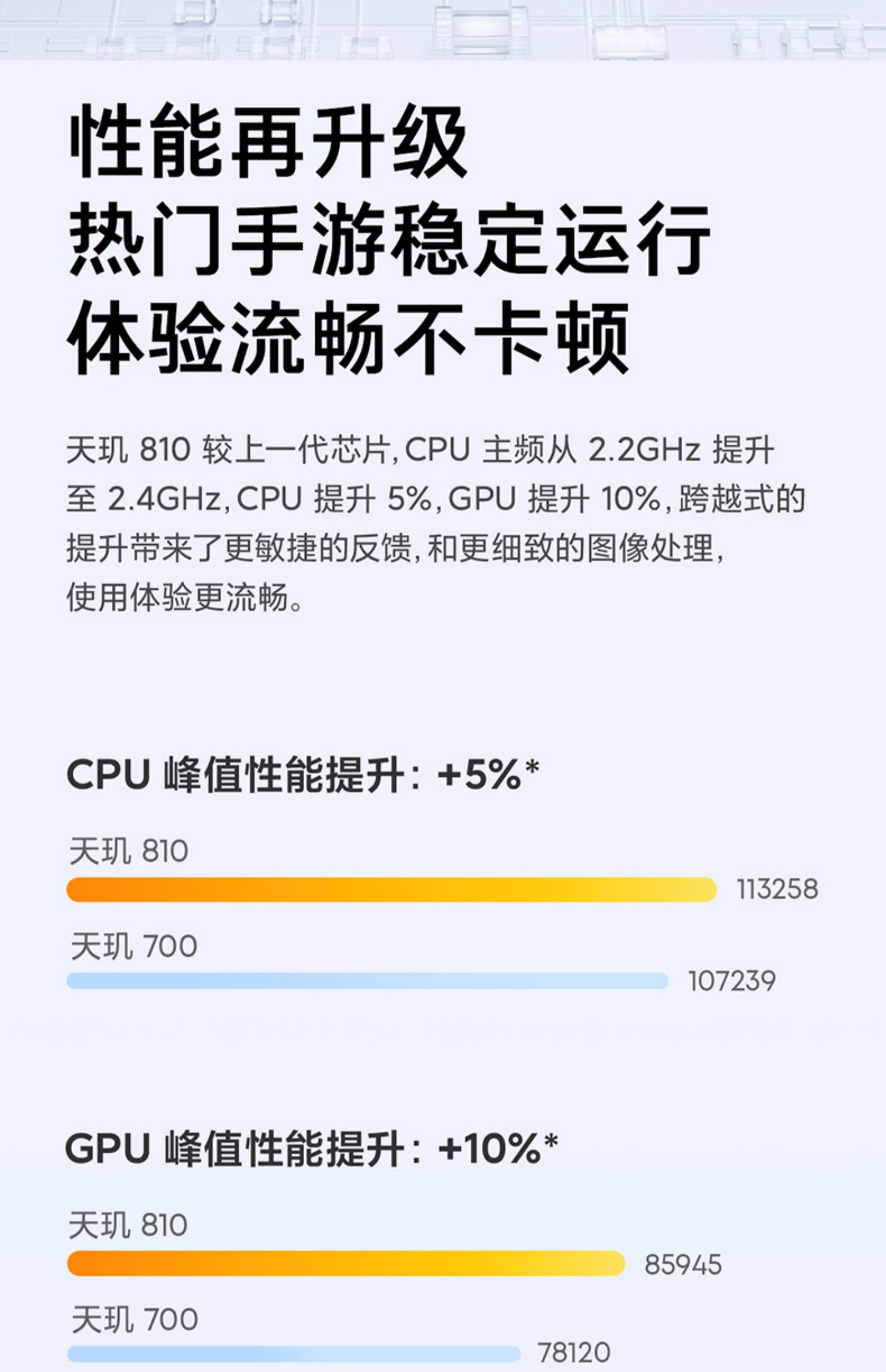 CPU型号:天玑810充电功率:33W保修期:12个月